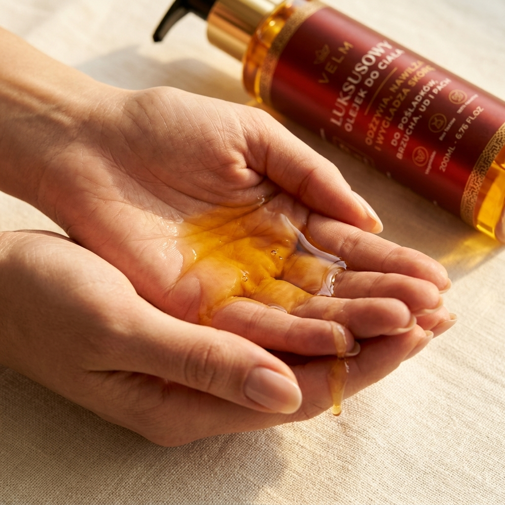 Poznaj VELM™ – luksusowy olejek, który intensywnie nawilża, wygładza i przywraca skórze naturalną jędrność.